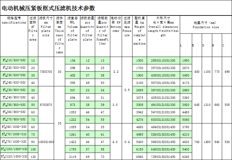 機(jī)械壓緊壓濾機(jī),壓緊時(shí)是由電動(dòng)機(jī)帶動(dòng)減速機(jī),經(jīng)傳動(dòng)部件推動(dòng)壓緊板壓緊濾板。壓緊螺桿和固定螺母設(shè)計(jì)有可靠的自鎖螺旋角,能保證壓緊時(shí)的可靠性和穩(wěn)定性。用電機(jī)綜合保護(hù)器實(shí)現(xiàn)自動(dòng)控制??蓪?duì)電機(jī)實(shí)現(xiàn)過(guò)熱和過(guò)載保護(hù)。