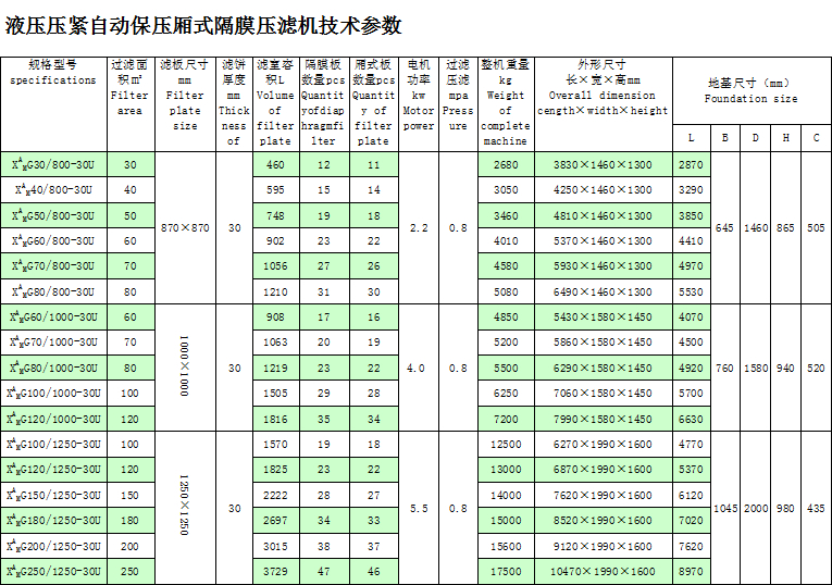 隔膜壓濾機(jī)是由隔膜濾板(隔膜濾板是由兩片聚丙烯膜片與高強(qiáng)度聚丙烯蕊板熱融合而成)和廂式濾板排列組成濾室,在輸料泵的壓力作用下將料漿輸入濾室,通過(guò)濾布將料漿中的固體和液體分離,當(dāng)料漿中的固體形成餅后,再向隔膜濾腔注入適當(dāng)壓力空氣,對(duì)濾室內(nèi)的固體充分壓榨,降低含水率。尤其對(duì)于粘性物料的過(guò)濾及對(duì)含水率要求高的用戶(hù),此機(jī)更有其獨(dú)特的特性。